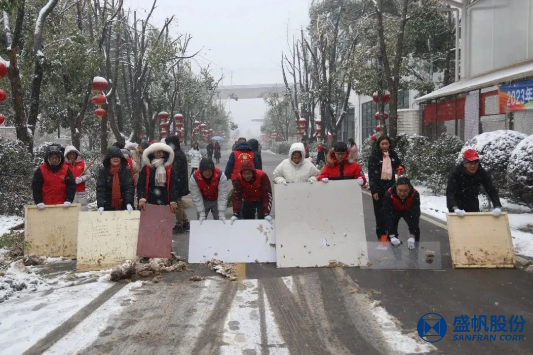 在困難面前,盛帆黨總支50余位黨員以雪為令、冒雪逆行,修剪被積雪壓垮的樹枝、清掃道路積雪,確保盛帆園區(qū)道路通暢,保障員工及家屬出行安全。在風(fēng)雪中為人民群眾筑起一道道堅(jiān)固的“紅色堡壘”,讓黨旗在除雪保暢一線高高飄揚(yáng),讓黨徽在除雪保暢一線熠熠生輝!